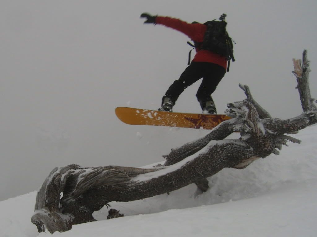 The wind was howling out of the east scouring much of the mountain. the trees were wtill great but above that was boiler plate. Three screws blew in my left toepeice on Devil's Backbone. The Cookie Cam and I come through feelin' pretty lucky.